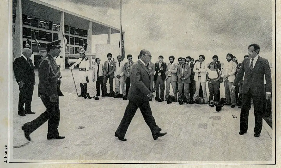 Gesto de fotojornalistas, de 1984, é lembradoCâmeras no chão e os olhares ficaram fixos à cena. Um gesto de ousadia feito há mais de 40 anos por um grupo de fotógrafos no pé da rampa do Palácio do Planalto entrou para a história da cobertura política durante a ditadura no