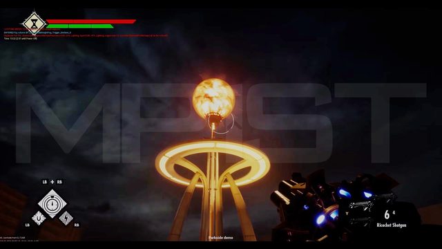 A tela em si revela pouco. Mostra meramente um fundo escuro com uma torre iluminada e o personagem segurando o que parece ser uma espingarda, além de uma interface mínima. Veja abaixo: